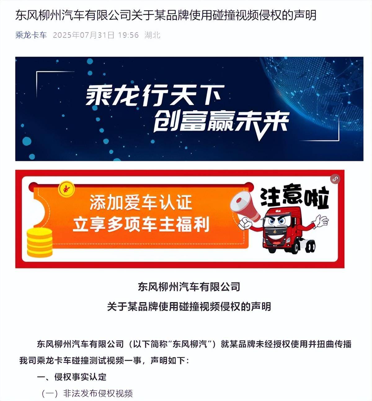 7月30日,乘龙卡车工作人员回应称:“公司法务部门正在处理,乘龙卡车始终坚守品质与安全第一的理念。”